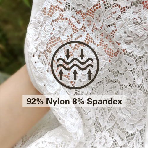 - Material: Soft. breathable lace fabric. made of 92% nylon and 8% spandex. slightly skin-permeable